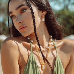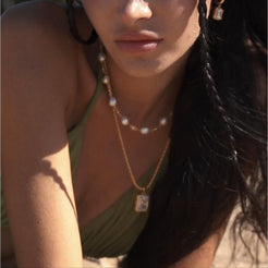 Sweety Pearls Kette aus der Ocean Stories KollektionDiese elegante Perlenkette von DJADEE ist ein wahrer Hingucker. Sie besteht aus 8-9 mm großen, hochwertigen Süßwasserperlen, die mit 24 Karat vergoldetem Messing und funkelnden 3 mm Zirkonia-Steinen kombiniert sind. Die Kette ist wasserfest und hypoallergen, sodass sie problemlos den ganzen Tag getragen werden kann. Dieses Schmuckstück verleiht jedem Outfit einen Hauch von Boho-Chic und ist ideal für den Strandurlaub oder einen entspannten Sommertag in der Stadt. Mit ihrer zeitlosen Schönheit ist diese Perlenkette ein wunderbares Geschenk für eine besondere Frau oder ein Mädchen in Ihrem Leben. Tragen Sie sie zu einem lässigen Outfit oder für einen festlichen Anlass - sie wird Ihren Look garantiert aufwerten.AUSGEZEICHNETE QUALITÄT: Keine Verfärbung, keine Hautreizung! Die Kette ist aus hochwertigem Messing, 24 Karat Gold vergoldet, mit einem edel-glänzenden Finish, sodass Du garantiert lange Zeit große Freude an diesem Schmuckstück hast. Qualität, die jeder an deinem Hals sofort erkennen wird. Die Kette wurde aufwendig mit 3 Goldschichten 24 Karat (999er) Gold vergoldet und garantiert daher eine luxuriöse Ausstrahlung. Dauerhafter Glanz, kein Abfärben durch die Vergoldung, rostfrei, nickelfrei, hochwertig verarbeitet, Farbe und Glanz wie echtes Gold.WIDERSTANDSFÄHIG: Durch die hochwertige Vergoldung, erhält unser Schmuck einen extra starken Schutz und behält seine Farbe selbst im Salzwasser oder unter der Dusche. Die Beschichtung ist besonders haltbar und kann lange Zeit halten. Zusätzlich werden alle Schmuckstücke mit einer Anlaufschutzschicht für langanhaltenden Glanz veredelt.