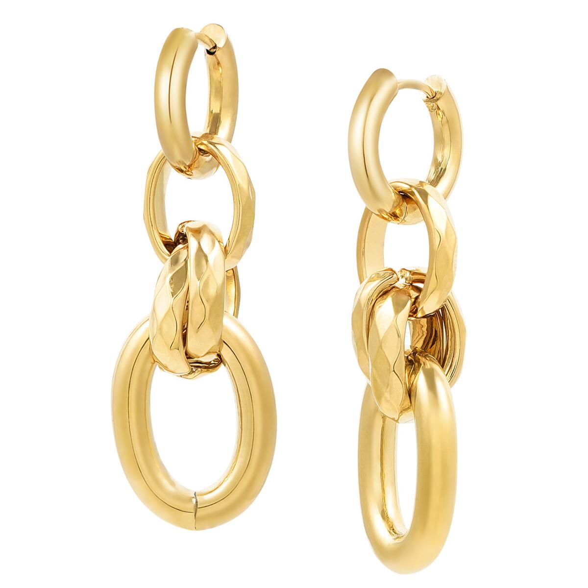 Lieferzeit: 2- 3 TageTwist OhrringeWow! Wie cool sind diese Ohrringe in Form von vier verbundenen Gliedern von DJADEE! Die Ohrringe lassen sich vielseitig kombinieren. Sie können mehrere Ohrringe mit diesem Paar tragen oder sie mit anderen farbenfrohen Schmuckstücken und Accessoires kombinieren - super lustig! Die Ohrringe bestehen aus Edelstahl, sind 18 Karat vergoldet und haben eine Größe von 4,7 cm. Erhältlich in den Farben Gold und Silber. Sie sind hypoallergen und wasserfest. Ein tolles Geschenk!AUSGEZEICHNETE QUALITÄT: Keine Verfärbung, keine Hautreizung! Die Ohrringe sind aus hochwertigem Edelstahl, 18 Karat Gold vergoldet, mit einem edel-glänzenden Finish, sodass Du garantiert lange Zeit große Freude an diesem Schmuckstück hast. Qualität, die jeder an deinem Ohr sofort erkennen wird. Die Ohrringe wurden aufwendig mit 3 Goldschichten vergoldet und garantieren daher eine luxuriöse Ausstrahlung. Dauerhafter Glanz, kein Abfärben durch die Vergoldung, rostfrei, nickelfrei, hochwertig verarbeitet, Farbe und Glanz wie echtes Gold.WIDERSTANDSFÄHIG – Durch die hochwertige Vergoldung, erhält unser Schmuck einen extra starken Schutz und behält seine Farbe selbst im Salzwasser oder unter der Dusche. Die Beschichtung ist besonders haltbar und kann langlebig halten. Zusätzlich werden alle Schmuckstücke mit einer Anlaufschutzschicht für langanhaltenden Glanz veredelt.